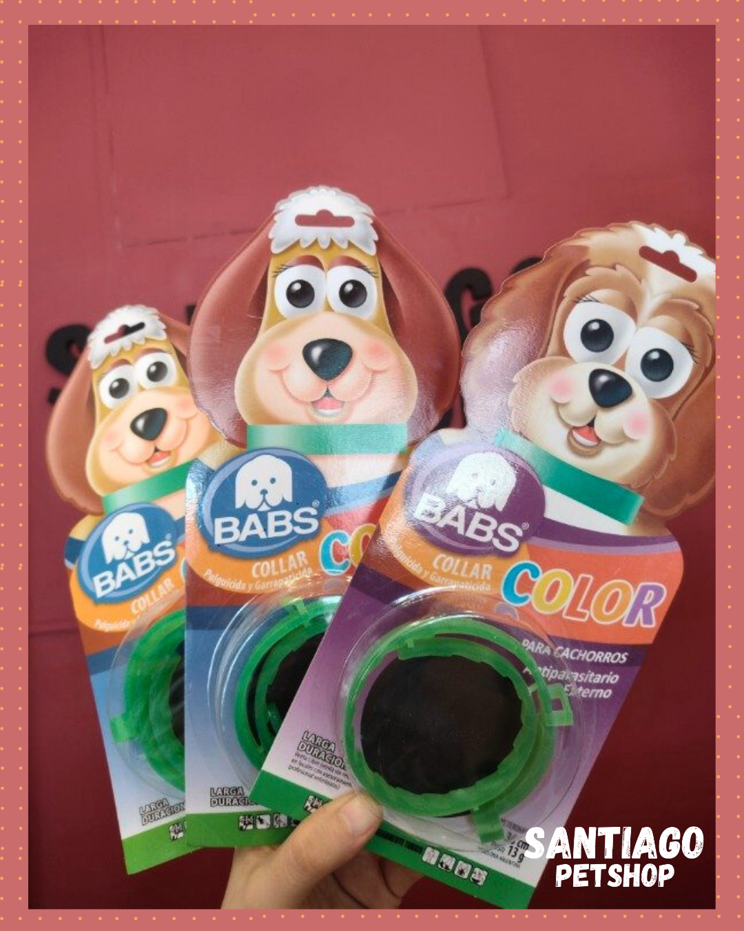 El COLLAR COLOR PARA PERROS BABS® contiene un polvo parasiticida que, gracias al roce con el cuello del perro, se esparce por todo el cuerpo. Y lo más importante: por su baja toxicidad, no produce irritación alérgica en la piel.