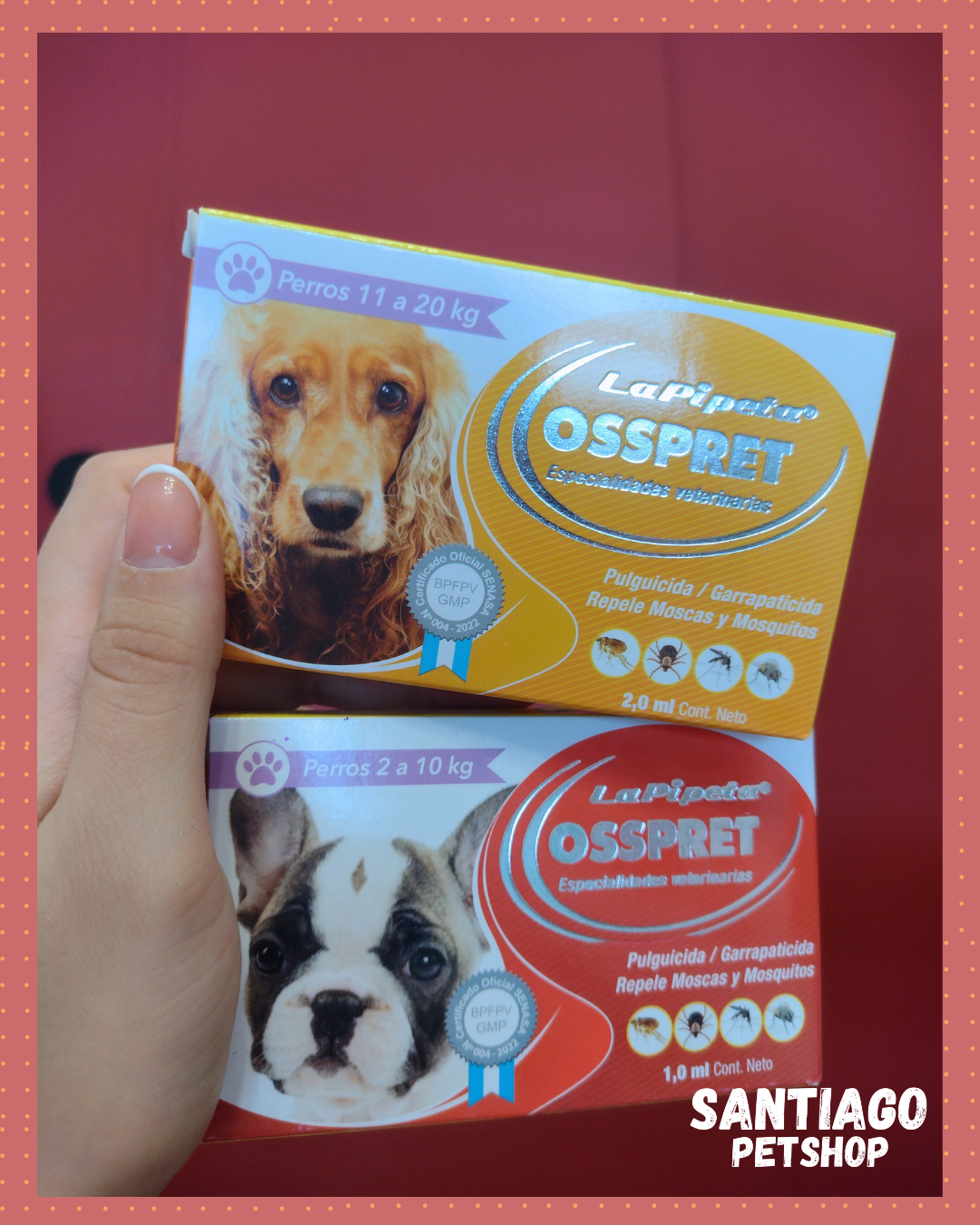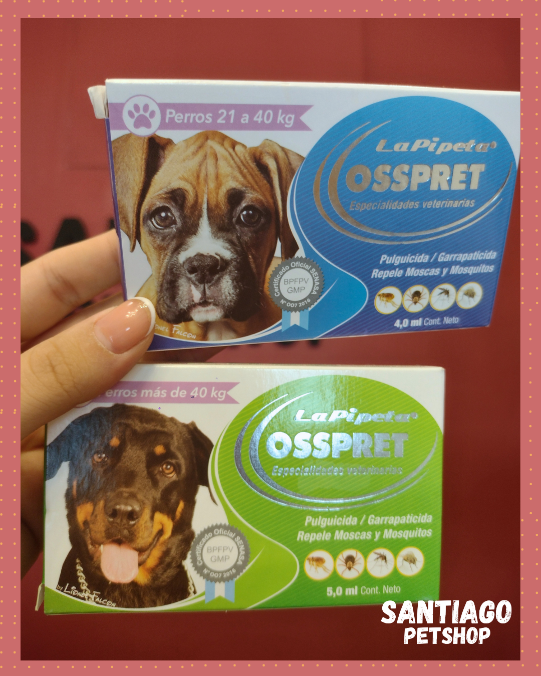 Antiparasitario externo contra pulgas y garrapatas en caninos LaPipeta® OSSPRET actúa como coadyuvante en la repelencia de moscas y mosquitos.