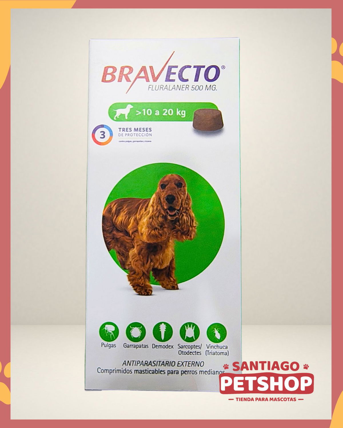Descubre la protección de BRAVECTO®, el comprimido masticable para perros que actúa contra pulgas, garrapatas y sarnas durante 12 semanas Puede aplicarse como parte del tratamiento para el control de la Dermatitis Alérgica por Picaduras de Pulgas (DAPP). Además, reduce la transmisión de enfermedades transmitidas por garrapatas, como Babesia canis. Se puede administrar en cachorros desde las 8 semanas de edad e incluso en perras preñadas y en lactancia. Brinda una protección duradera y efectiva para el bienestar de tu mascota.