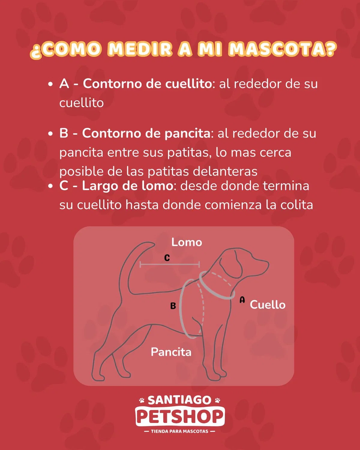 Recomendamos tomar siempre las medidas de su mascota para saber su talle exacto 🐾