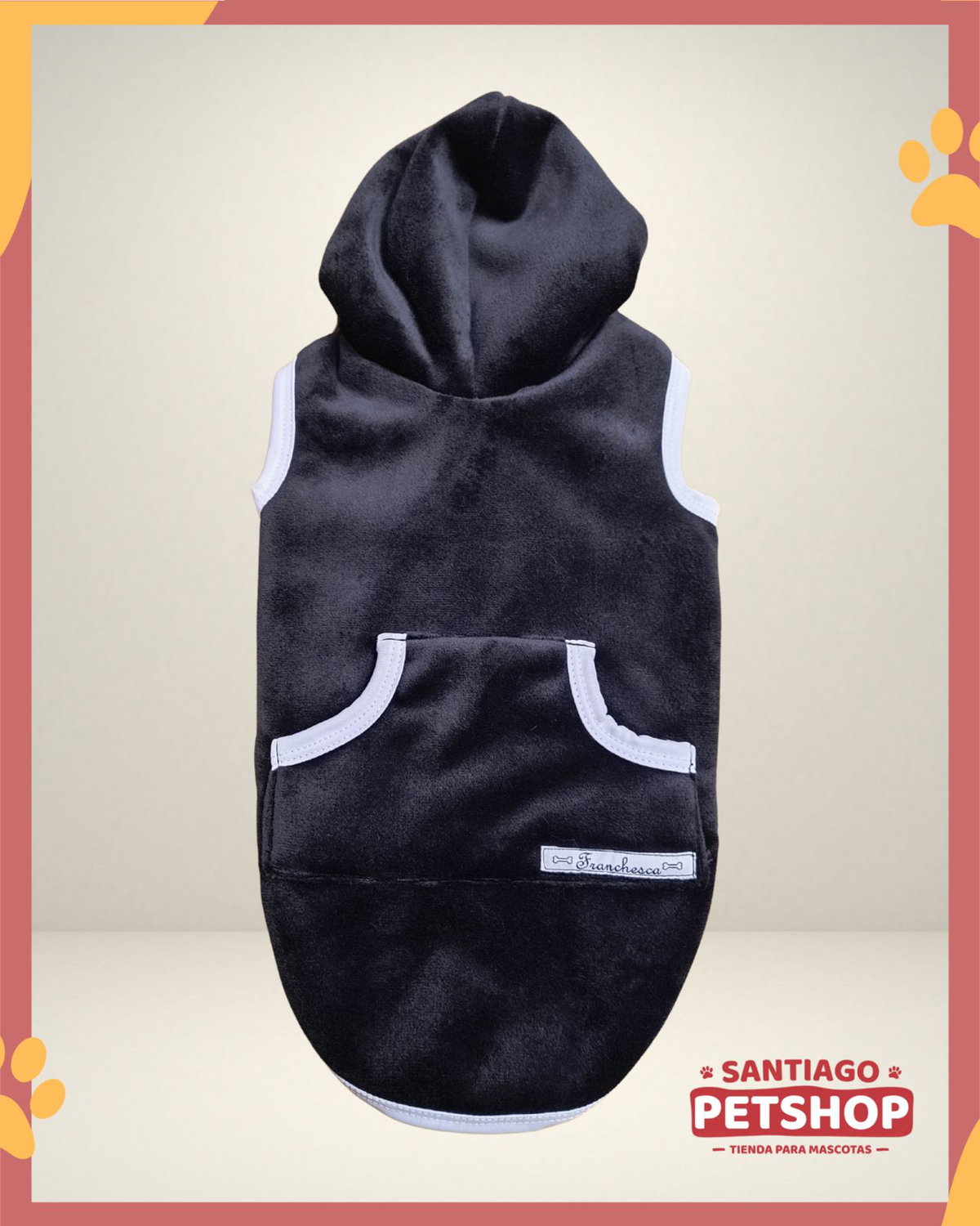 Realizado en plush con piel en su interior. Capucha y detalles en blanco