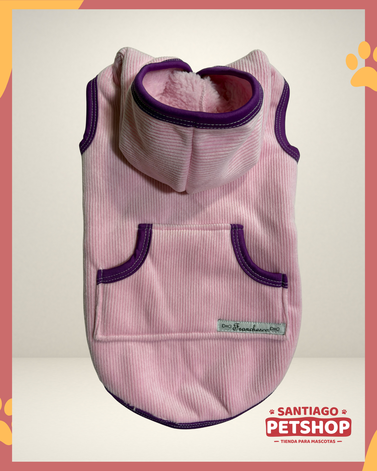 Realizado en plush con piel en su interior. Capucha y detalles en blanco
