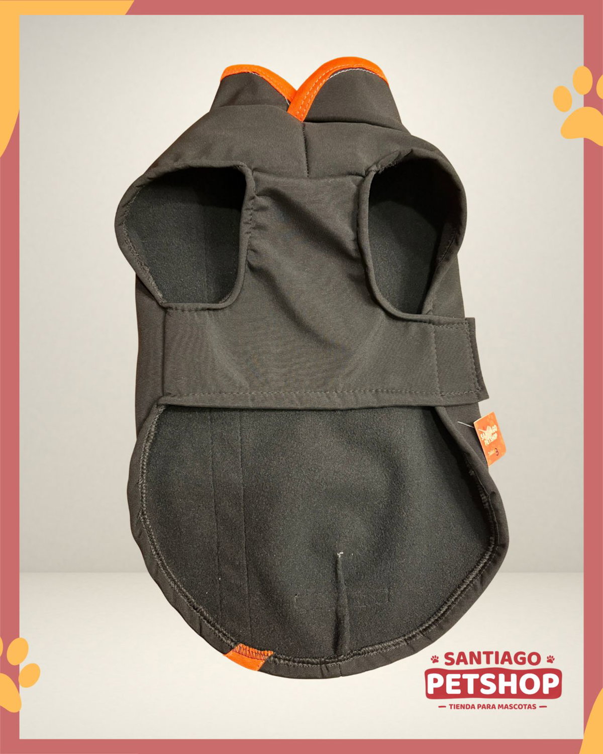 Cuenta con cuellito alto que ayuda a resguardar mejor del viento y la lluvia, y un práctico cierre con abrojo en la parte inferior, que permite ajustarlo fácilmente al cuerpo de tu mascota.