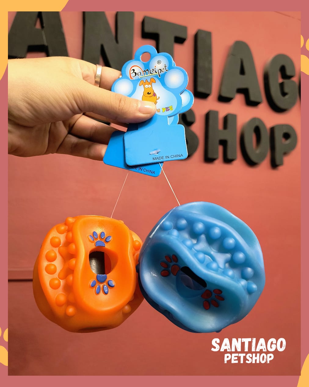 Fabricadas en material duro y duradero, emiten sonido al moverlas y cuentan con una cavidad central donde podés colocar alimento o snacks, convirtiéndolas en un juguete interactivo y reforzador positivo.