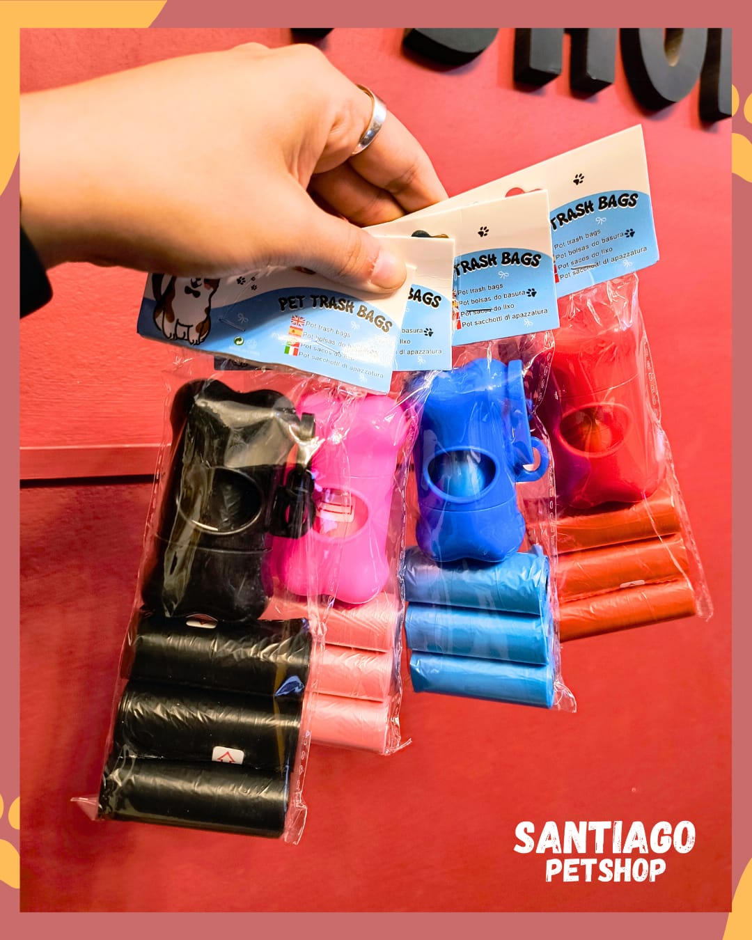Este práctico set incluye un dispensador con forma de huesito y 4 rollos de bolsitas para recoger los desechos de tu perro de forma rápida, limpia y responsable. El dispensador es compacto, liviano y viene con gancho para colgar en la correa o bolso.