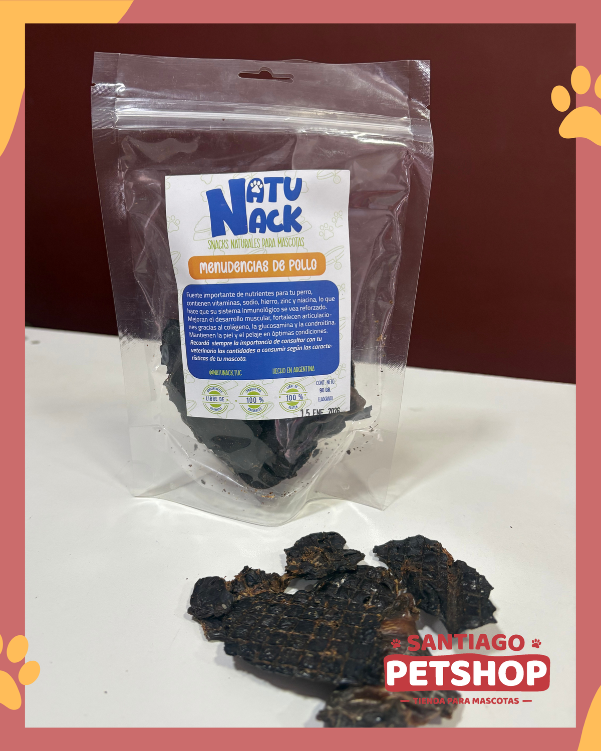 Snack natural deshidratado para perros y gatos.