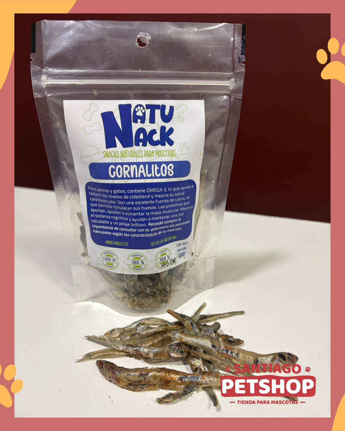 Los cornalitos deshidratados son un snack 100% natural, ideal para perros y gatos. Ricos en Omega 3, ayudan a cuidar la salud cardiovascular y contribuyen a mantener una piel sana y un pelaje brillante.