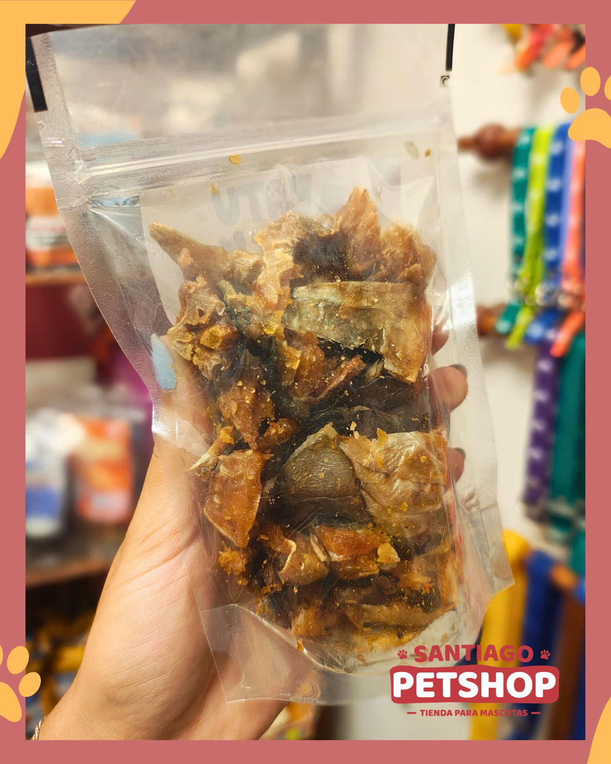 Los casquitos de salmón deshidratados son un snack 100% natural, ideal para perros (y también apto para gatos).