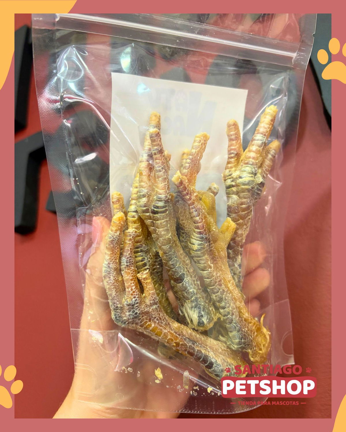 Las garras de pollo deshidratadas para perros son un snack 100% natural, nutritivo y funcional, ideal para complementar la alimentación diaria de tu mascota. Elaboradas únicamente con garras de pollo deshidratadas, sin conservantes ni aditivos, se destacan por su alto contenido de colágeno, que ayuda a mantener articulaciones, huesos y piel saludables.