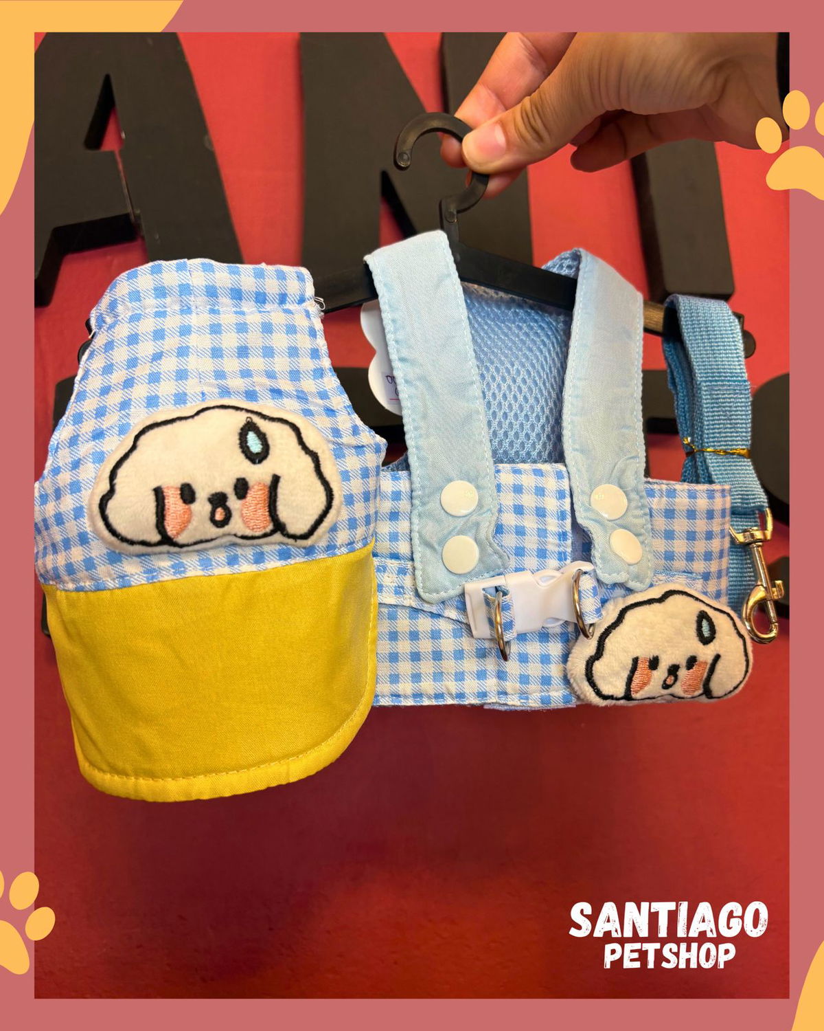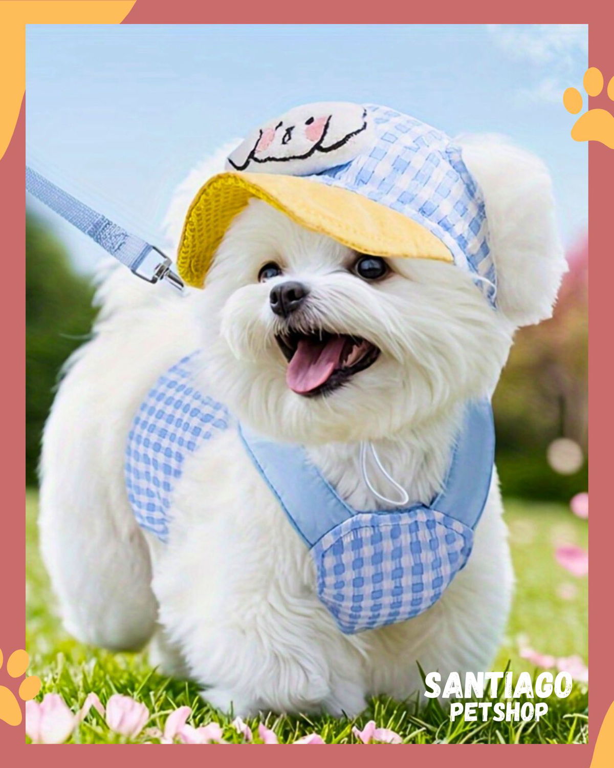 Dale a tu mascota un look único con este conjunto completo que incluye pecherita, gorrita y correa, todo en el mismo diseño. Ideal para paseos, salidas o para que luzca a la moda en cualquier ocasión.