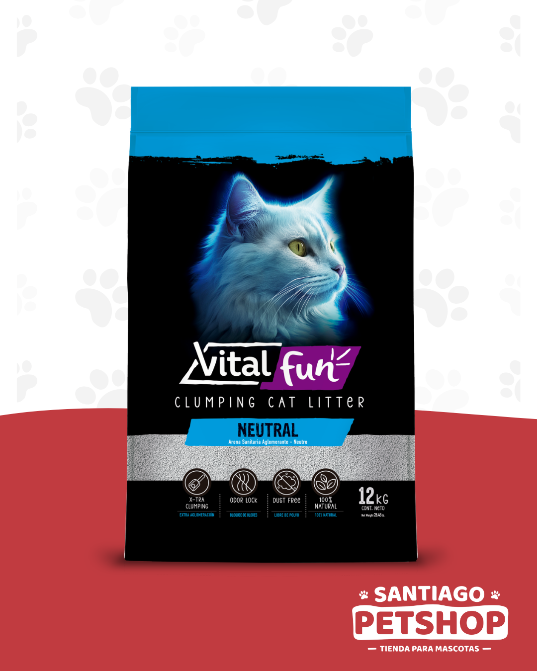 Vitalfun Clumping Cat Litter es arena aglomerante que facilita la limpieza diaria de la bandeja sanitaria, brindando una experiencia cómoda para tu gato y tranquilidad para ti. Su eficacia aglomerante y alta calidad contribuyen al confort de tu hogar. La vida es simple y divertida con Vitalfun.