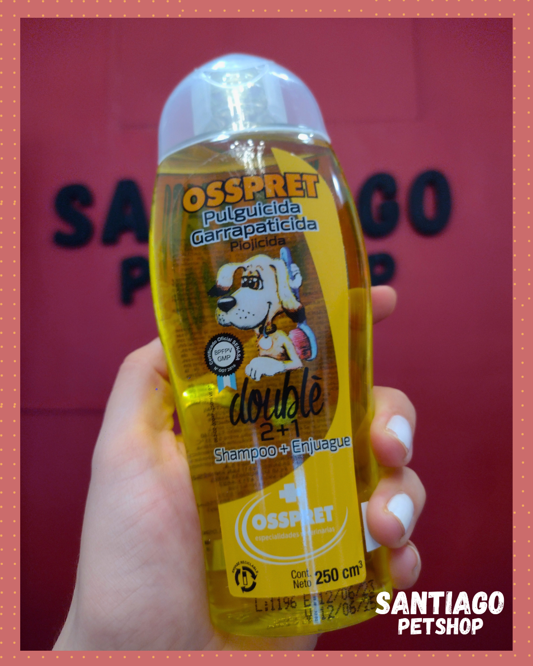Componentes: Shampoo + enjuague. Base de lavado suave, cipermetrina 0,25% D-Limoneno.