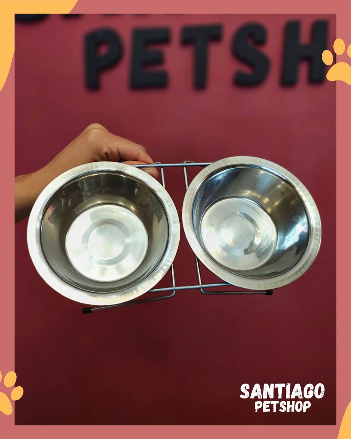 Comedero doble de acero con soporte