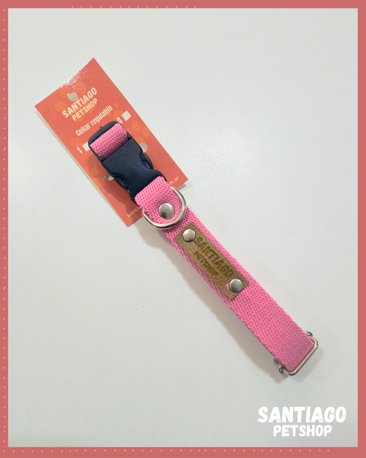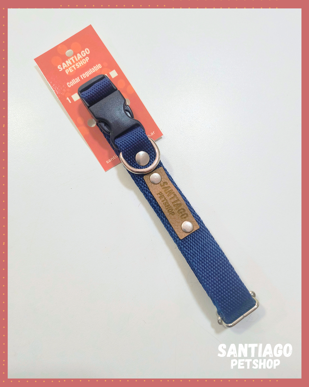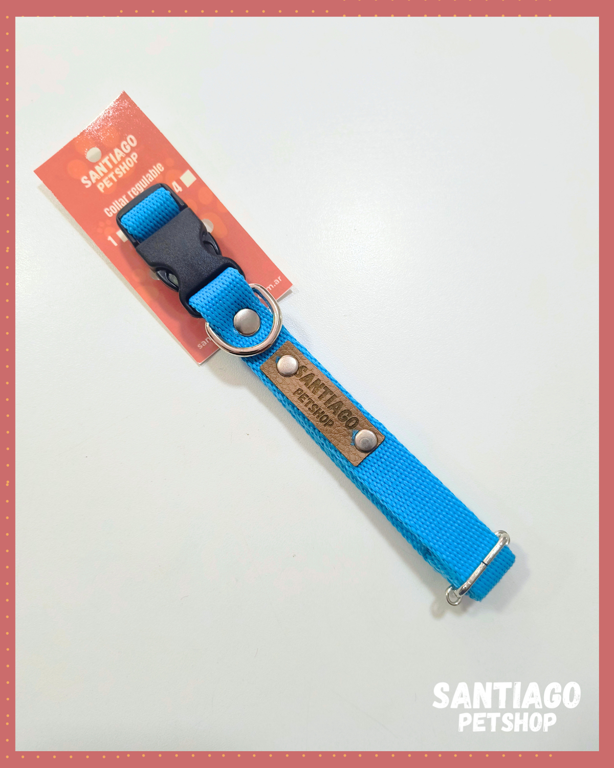 Este collar regulable se adapta perfectamente al cuello de tu perro, brindando un ajuste seguro y cómodo. Ademas, su enganche con hebilla facilita su colocacion