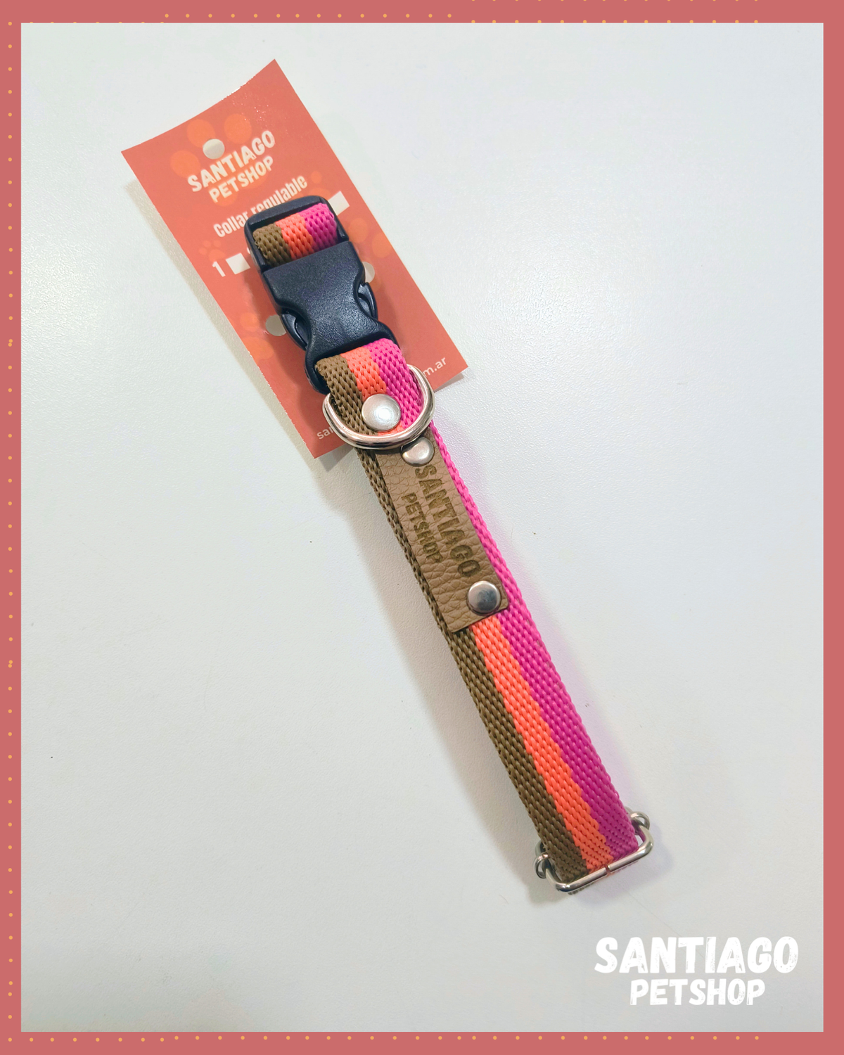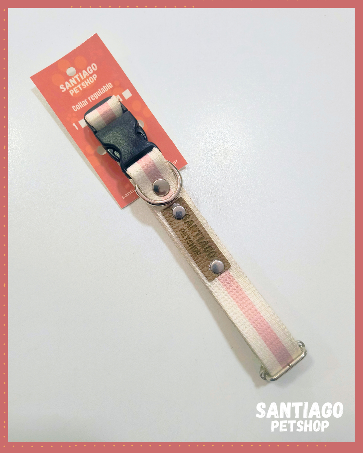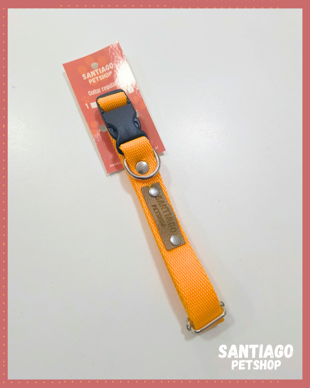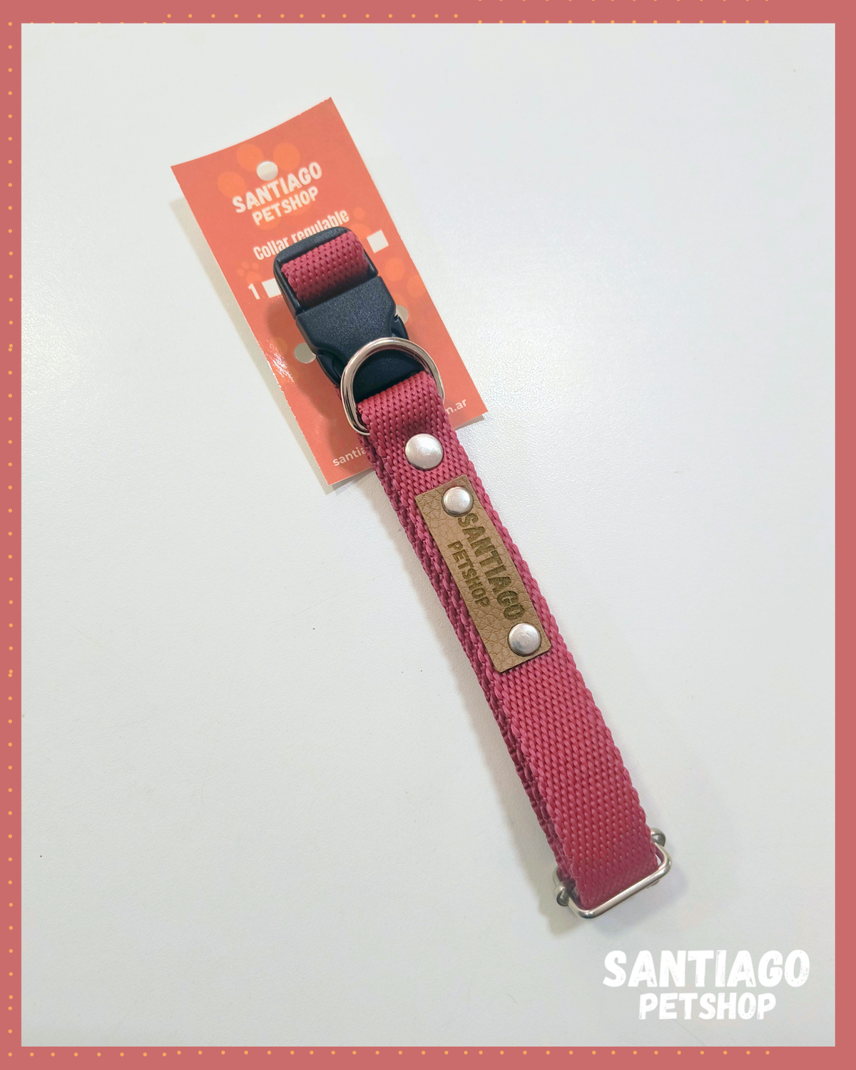 Este collar regulable se adapta perfectamente al cuello de tu perro, brindando un ajuste seguro y cómodo. Ademas, su enganche con hebilla facilita su colocacion