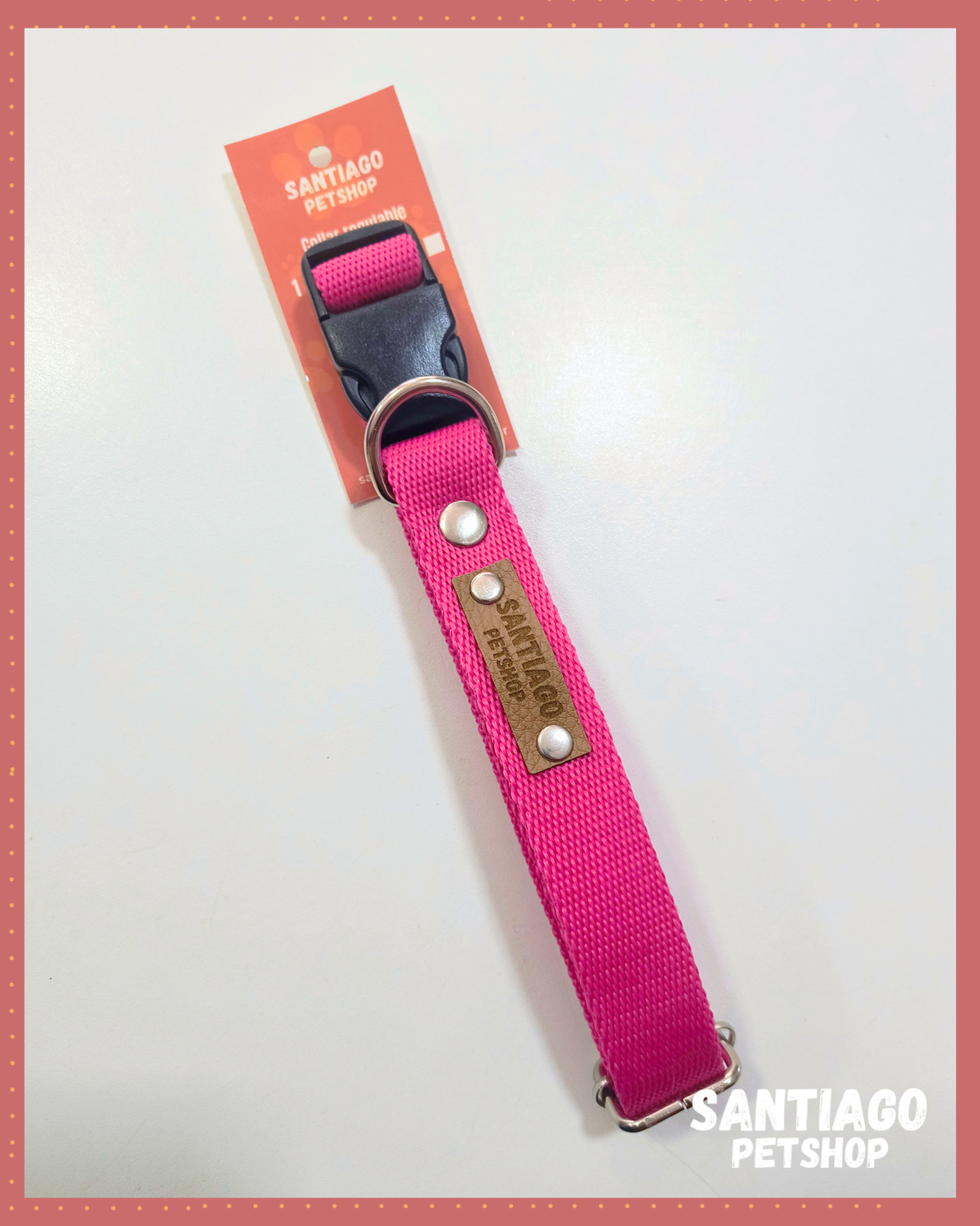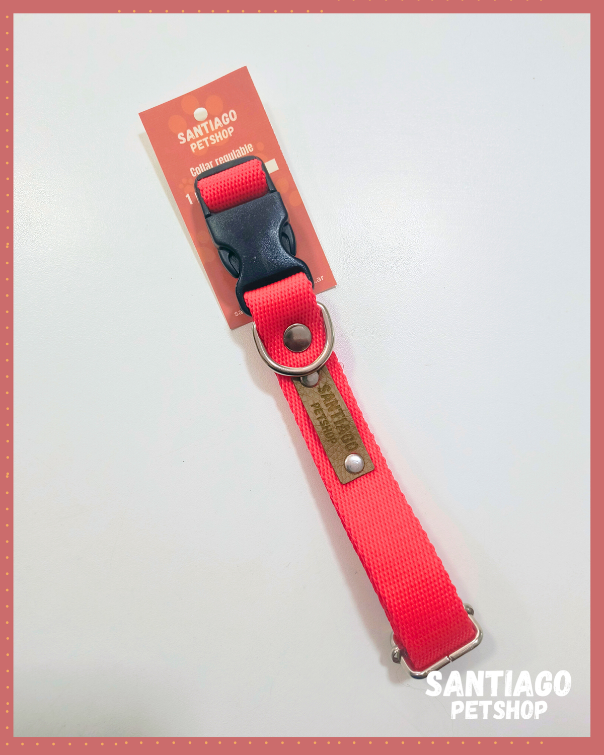 Este collar regulable se adapta perfectamente al cuello de tu perro, brindando un ajuste seguro y cómodo. Ademas, su enganche con hebilla facilita su colocacion